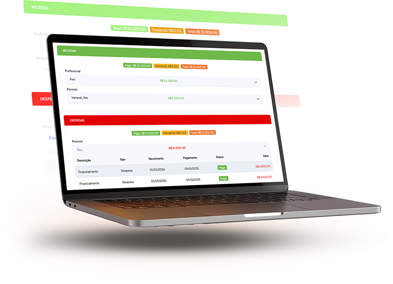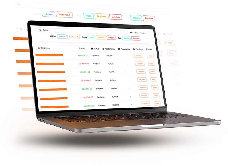 Entender para onde seu dinheiro vai e de onde ele vem é o primeiro passo para uma carreira de sucesso e uma vida financeira tranquila. A aba Finanças é o seu centro de comando financeiro, desenhado para oferecer clareza total sobre suas receitas e despesas, tanto na vida pessoal quanto na profissional.